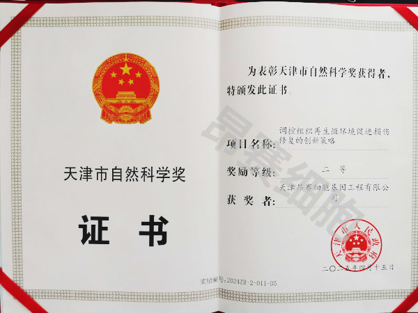 公司合作項目《調(diào)控組織再生微環(huán)境促進損傷修復的創(chuàng)新策略》獲得天津市自然科學二等獎。