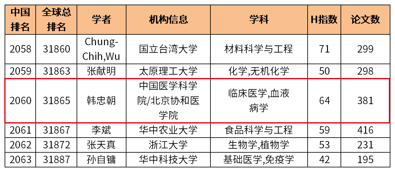 近日,國(guó)內(nèi)全球?qū)W者庫(kù)網(wǎng)站公布了“2023全球?qū)W者學(xué)術(shù)影響力排名(終身學(xué)術(shù)影響力榜)”。漢氏聯(lián)合集團(tuán)董事長(zhǎng)韓忠朝院士再次上榜“全球頂尖前10萬(wàn)科學(xué)家排名”榜單。該名單中國(guó)內(nèi)共有8029人入圍,韓忠朝院士位于臨床醫(yī)學(xué)學(xué)科領(lǐng)域中國(guó)排名前200的學(xué)者名單,H指數(shù)為64。