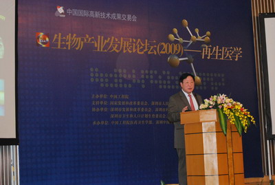 ??? 2009年11月17日,韓忠朝教授作為特邀嘉賓參加中國工程院在深圳第十一屆高交會上舉辦的主題為“再生醫(yī)學(xué)”的“生物產(chǎn)業(yè)發(fā)展論壇(2009)”。本次論壇由中國工程院醫(yī)藥衛(wèi)生學(xué)部主任楊勝利院士主持,中國工程院醫(yī)藥衛(wèi)生學(xué)部王正國院士擔(dān)任論壇執(zhí)行主席。中國工程院副院長鄔賀銓院士、深圳市副市長唐杰、國家發(fā)展和改革委員會高技術(shù)產(chǎn)業(yè)司巡視員綦成元出席并致辭。