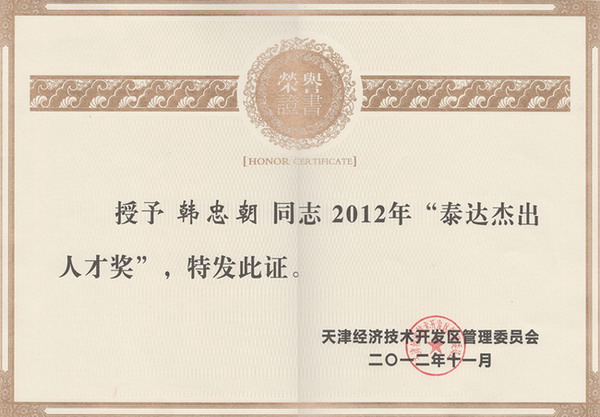 ????? ?11月28日天津開發(fā)區(qū)舉行科技型中小企業(yè)發(fā)展推動會上公布了2012年開發(fā)區(qū)人才評優(yōu)表彰結(jié)果,我公司董事長兼總經(jīng)理韓忠朝教授榮獲“泰達杰出人才獎”。與此同時,韓忠朝教授還榮獲了中國醫(yī)學(xué)28日天津開發(fā)區(qū)舉行科技型中小企業(yè)發(fā)展推動會上公布了2012年科學(xué)院頒發(fā)的“突出貢獻獎”。