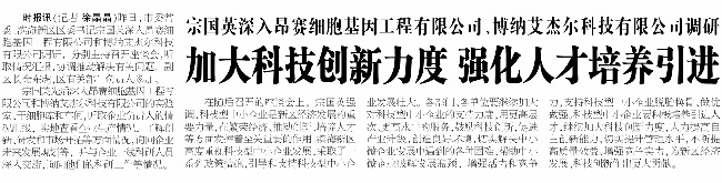 加大科技創(chuàng)新力度 強(qiáng)化人才培養(yǎng)引進(jìn)——宗國英深入昂賽細(xì)胞基因工程有限公司調(diào)研